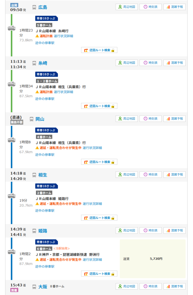 広島→大阪 青春18きっぷ旅の基本情報