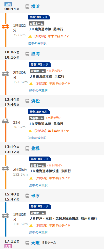 横浜から大阪・京都へ青春18きっぷで行く時の基本情報